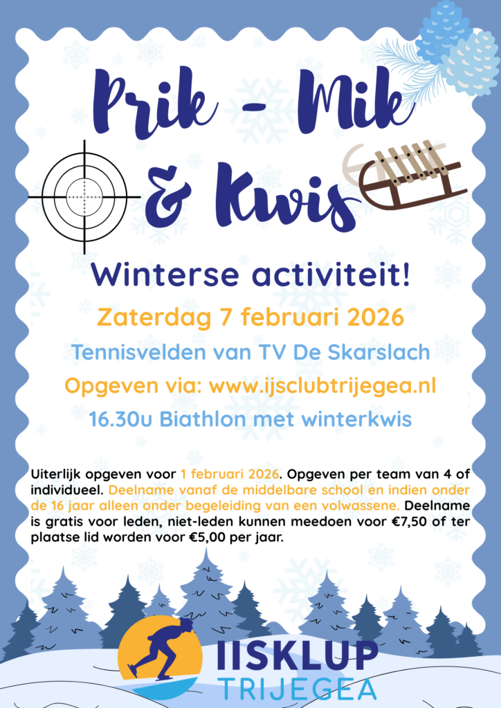 Je kunt je vanaf heden opgeven voor de Biathlon op zaterdag 7 februari 2026!